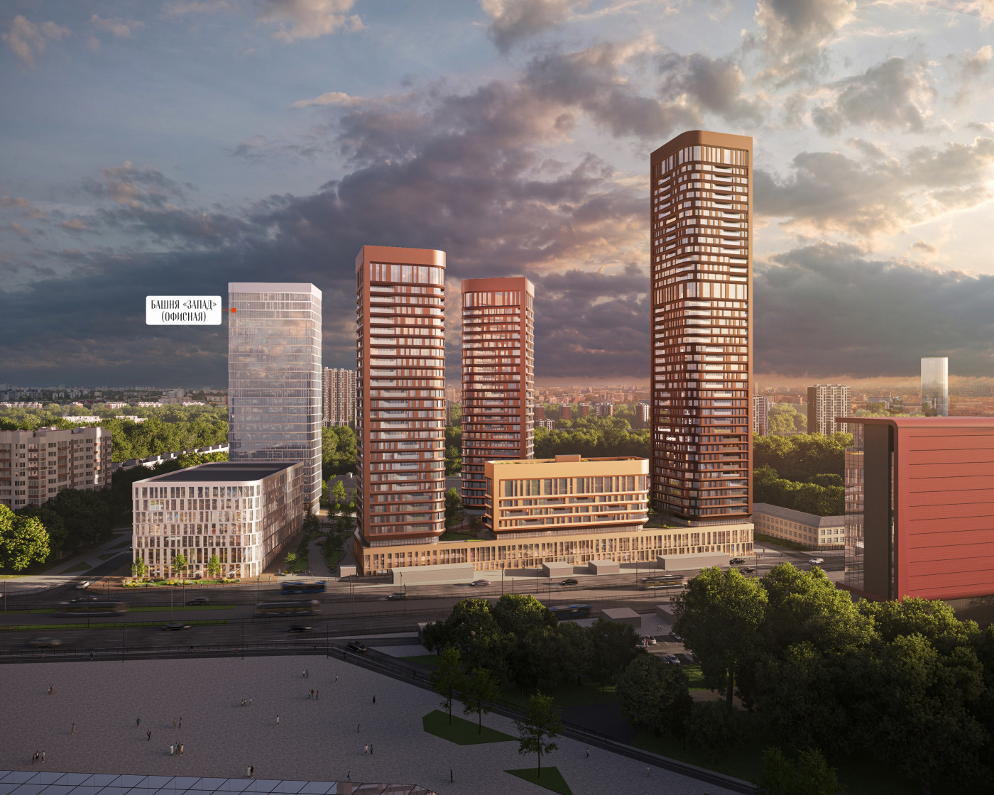 Западная башня – башня с офисными и коммерческими помещениями и дополняющей развитой сервисной инфраструктурой.