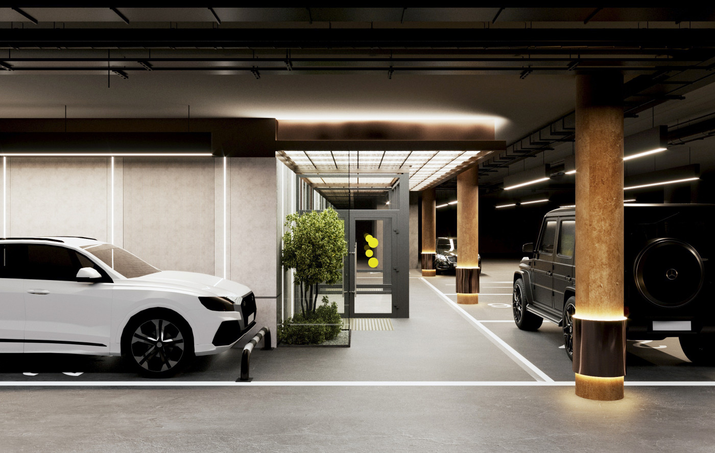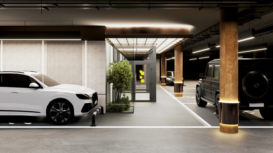 На - 1 и -2 этажах расположен вместительный тёплый подземный паркинг. Прямые выходы из паркинга в гастромолл. Заезд со стороны ул. Октябрьской революции. Ваши сотрудники будут на рабочем месте вовремя, а гости доберутся в отличном настроении.