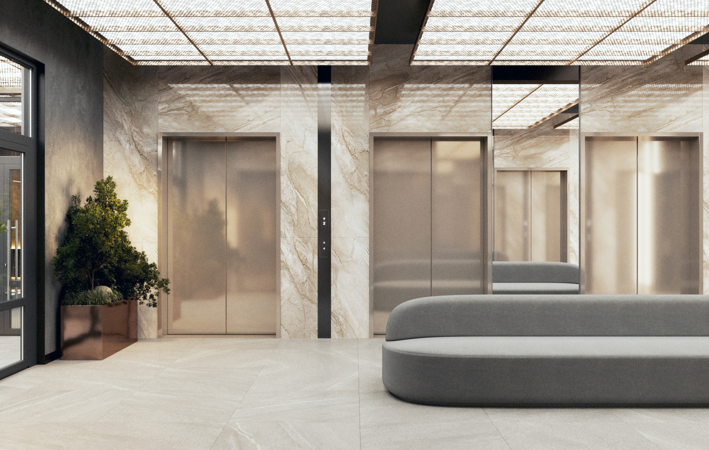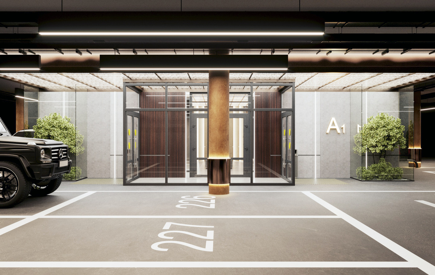 6 панорамных лифтов с остеклением доставят вас из паркинга на необходимый этаж.