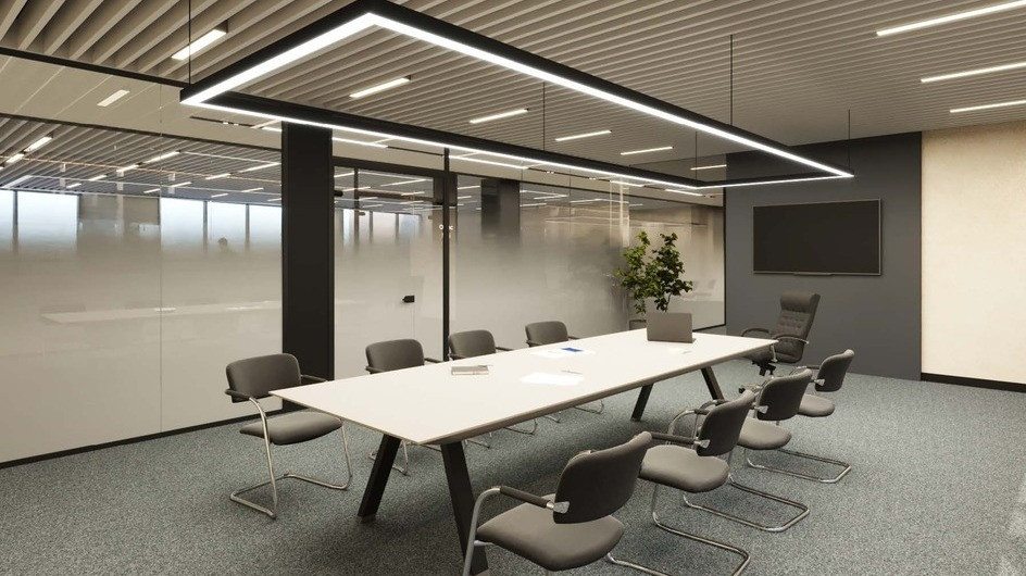 Панорамное остекление. Благодаря такому решению, в вашем бизнес-пространстве всегда будет светло, а солнечные блики будут красиво отражаться от внутренних поверхностей.