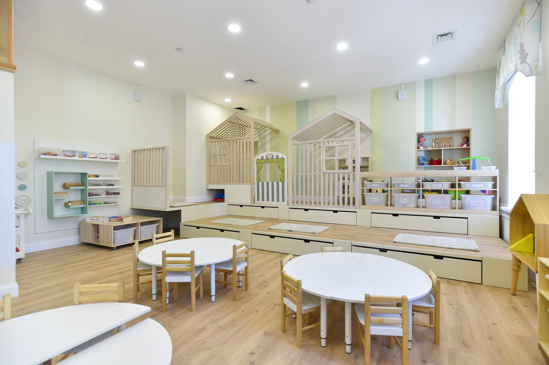 Детский сад разместится на первом и втором этажах одной из секций «Нагорного», в помещениях с высокими потолками и панорамными окнами. Его общая площадь — 2,2 тыс. кв. м. Помимо групп и общественных пространств будут оборудованы небольшие мастерские, где дети смогут заниматься шитьем, столярным делом, робототехникой, изучать английский язык, посещать логопедические занятия и готовиться к школе. Детей будут обучать узкопрофильные специалисты высокой квалификации. Завтракать, обедать и ужинать дети будут не в группах, а в детском кафе. А гулять — в специально отведенных прогулочных зонах на территории жилого квартала. Для встреч педагогов и родителей появится просторный коворкинг.