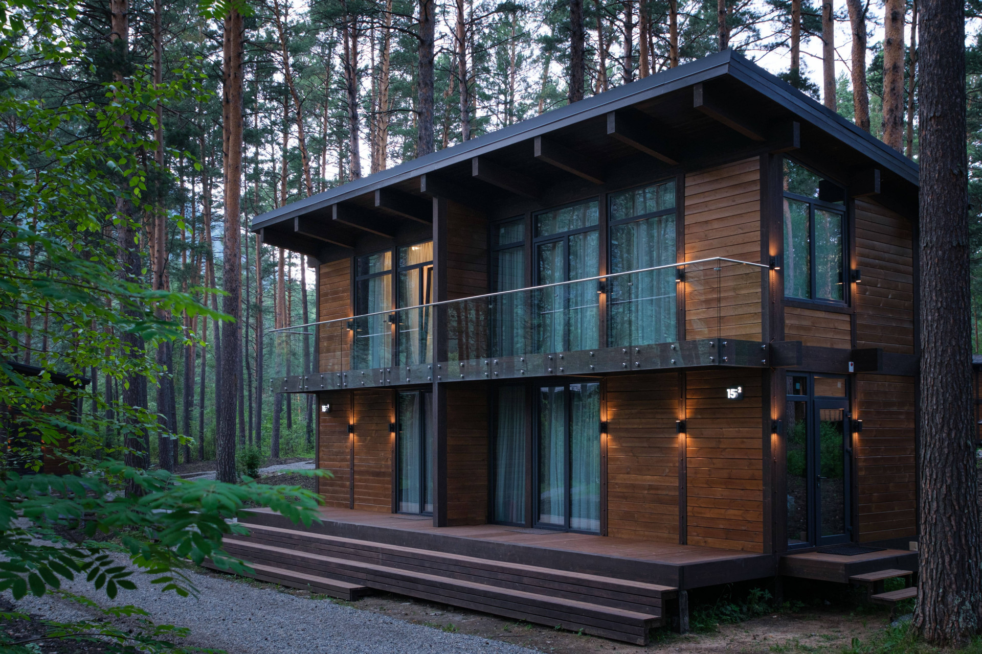 Парк-отель представляет собой комплекс из девяти двухэтажных домов-дуплексов в экостиле с апартаментами и дома-шале. Общий жилой фонд составляет 48 номеров, в каждом из которых независимо от категории – стандарт, супериор или люкс, имеются большие панорамные окна, откуда открываются живописные виды, и собственная терраса с мягкой зоной отдыха. Особой популярностью у искушенных туристов пользуются дуплексы с двухэтажными номерами вместимостью до 5 человек: на первом этаже располагается гостиная с мягкой зоной и кухней и выходом на большую террасу с чаном-купелью, а на втором - стильная мастер-спальня с кроватью king size, гардеробом, отдельной душевой и вместительным балконом с лаунж зоной.