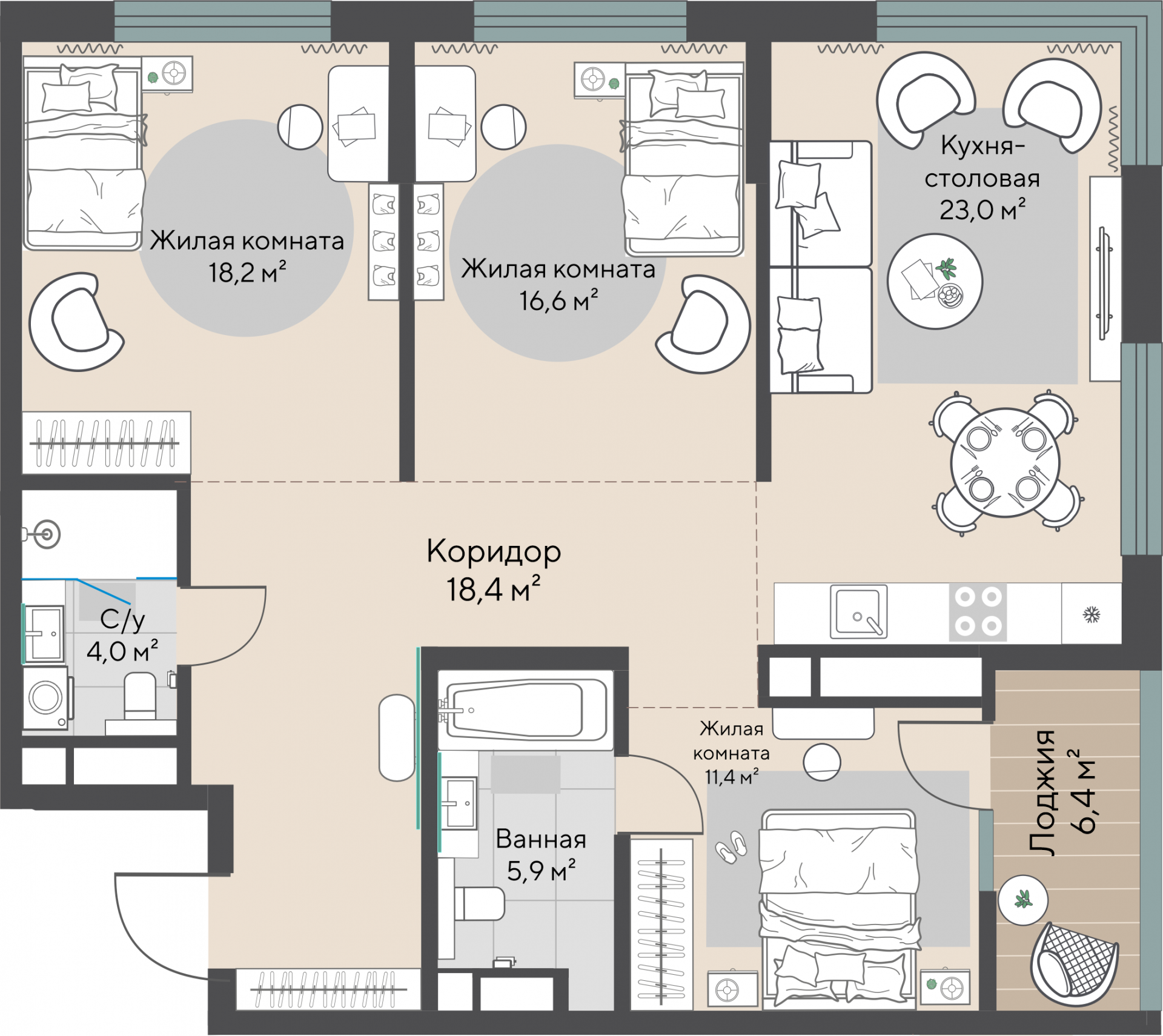 3-комнатная, №К-2.2-4-10, 97.5 м²