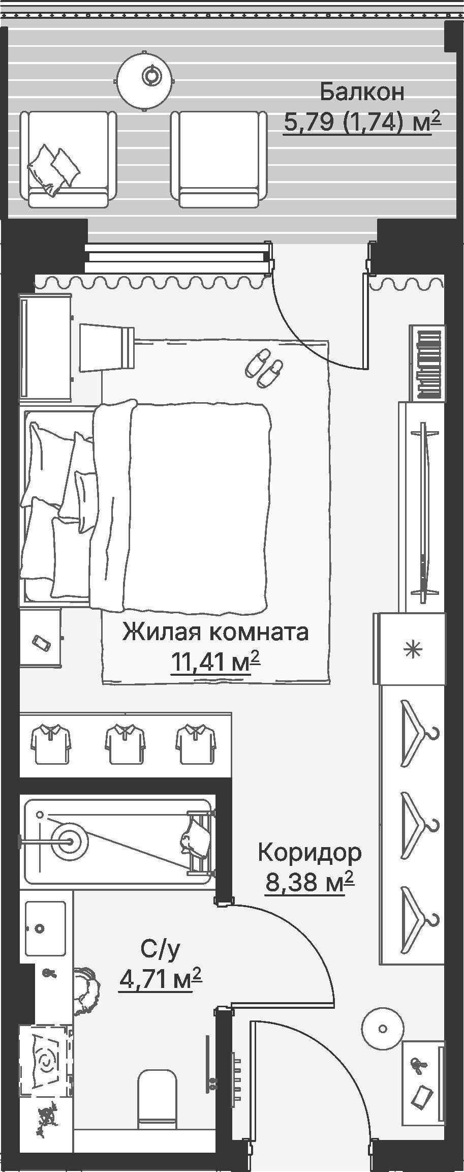 Гостиничный номер, 1-комнатная, №705, 26.33 м²