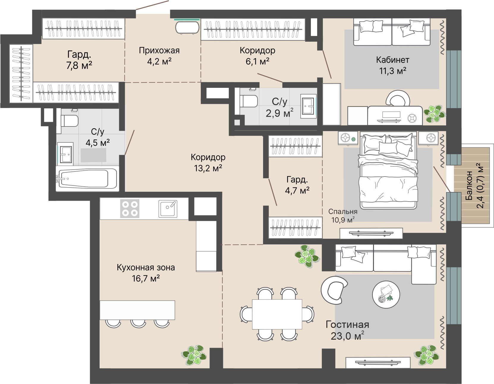 2-комнатная, №13, 106 м²